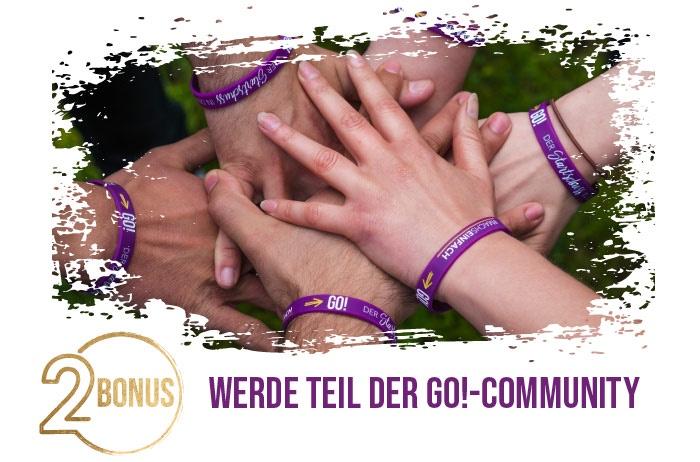 - Dein praxisorientiertes Handbuch GO! voller Handlungsschritte, die all Deine Blockaden lösen und Dich Deinem Traumziel näher bringen (im Wert von 29,95€)