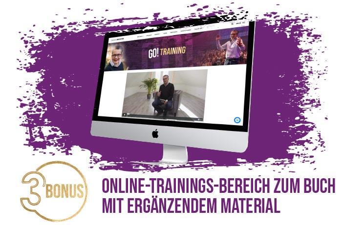 - Deinen Online-Trainingsbereich mit vertiefenden Inhalten, mit dessen Hilfe Du garantiert in die Umsetzung kommst und alles erreichst, was Du Dir vornimmst (im Wert von 99€)